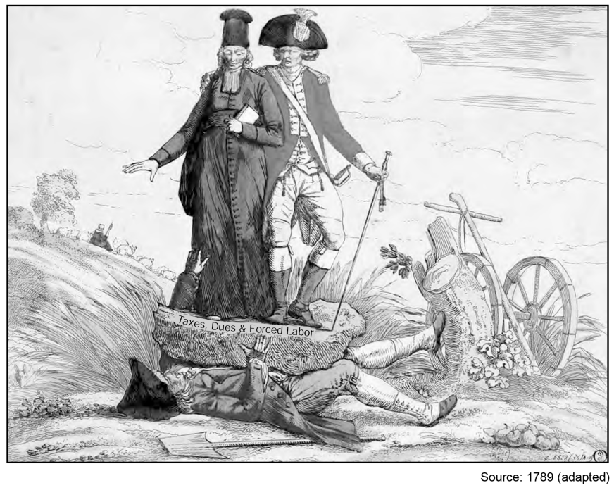Identify 3 historical circumstances (reasons) that led to the French Revolution