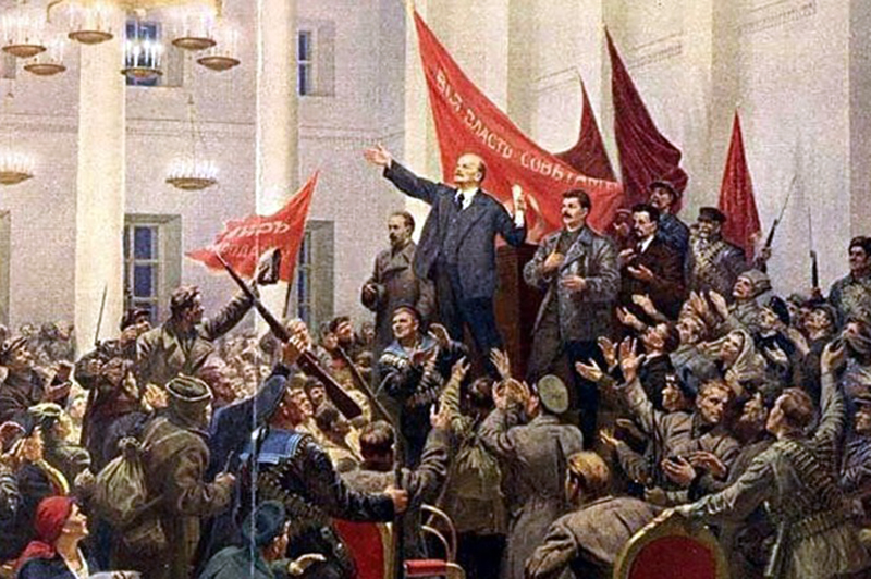 During the Russian Revolution, Vladimir Lenin gained support by promising the people these three things: an end to war, redistribution of land, and food for all.