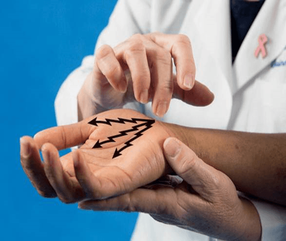Adduction is movement toward the midline. Abduction is movement away from the midline.