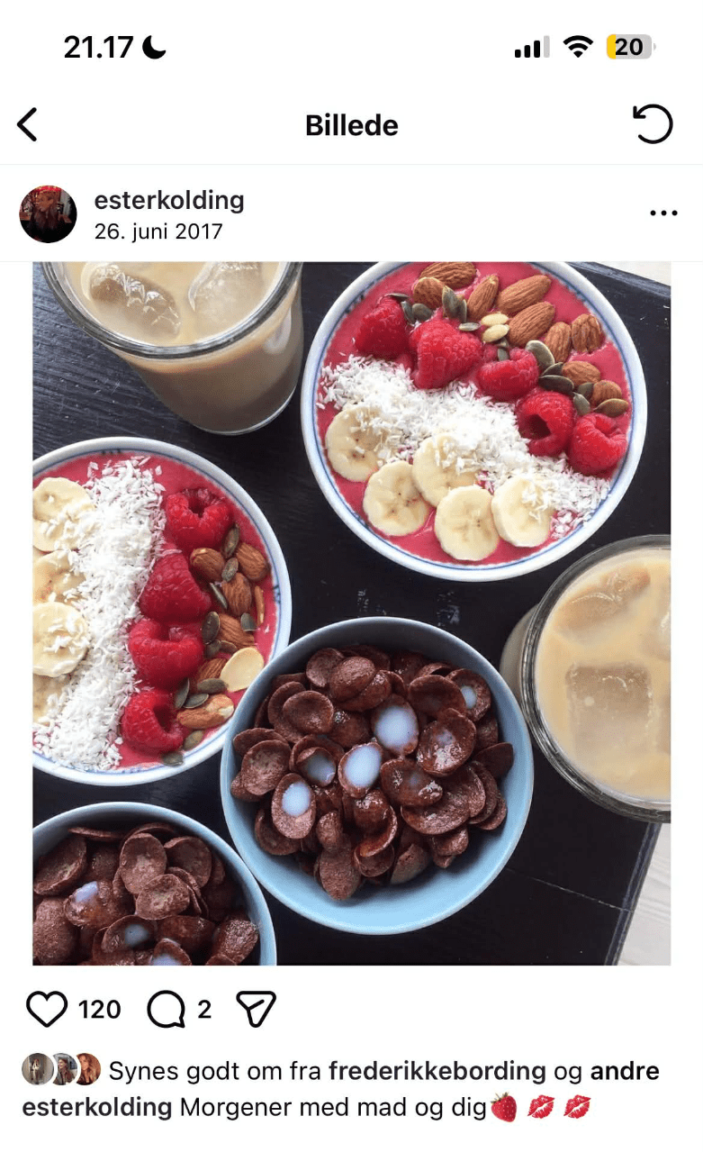 Hvem har lagt dette opslag på Insta i 2016 med denne caption: "Morgener med mad og dig"