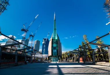 The Swan Clock Tower is an 82 foot tall glass sphire overlooking the Swan River in this Australian city.