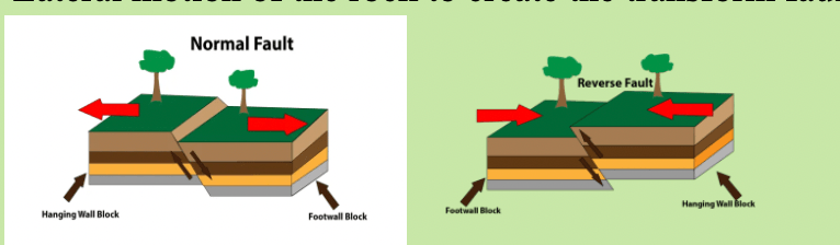 Normal faults move away from each other- divergence, like at the mid-ocean ridges