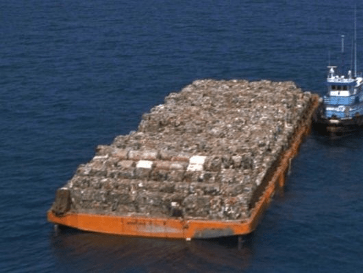 You can't spell "garbage" without this kind of boat; the Mobro wandered around the Atlantic in 1987 with 3,000 tons of New York trash