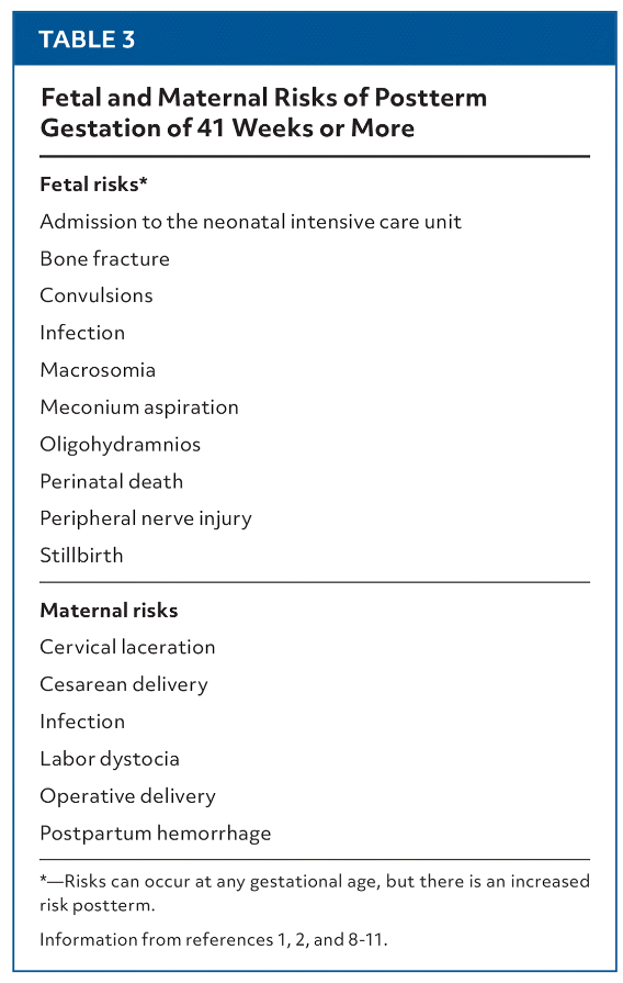Name 3 risks which significantly increase in postterm pregnancies (for mother or baby)