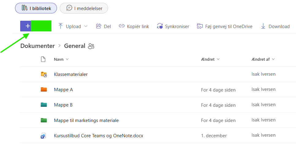 Navnet på den hovedkanal i et team, hvor alle medlemmer kan se opslag og som oprettes automatisk, når et Teams skabes
