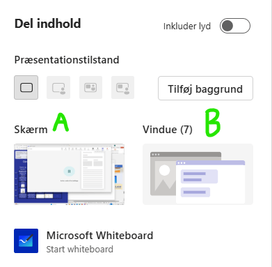 Denne funktion under "Del indhold" viser hele indholdet på mødedeltagerens monitor