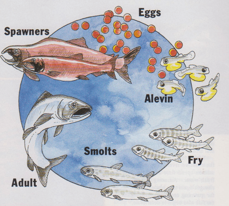 After salmon mature and travel to the ocean, they return to the same stream they were born in.