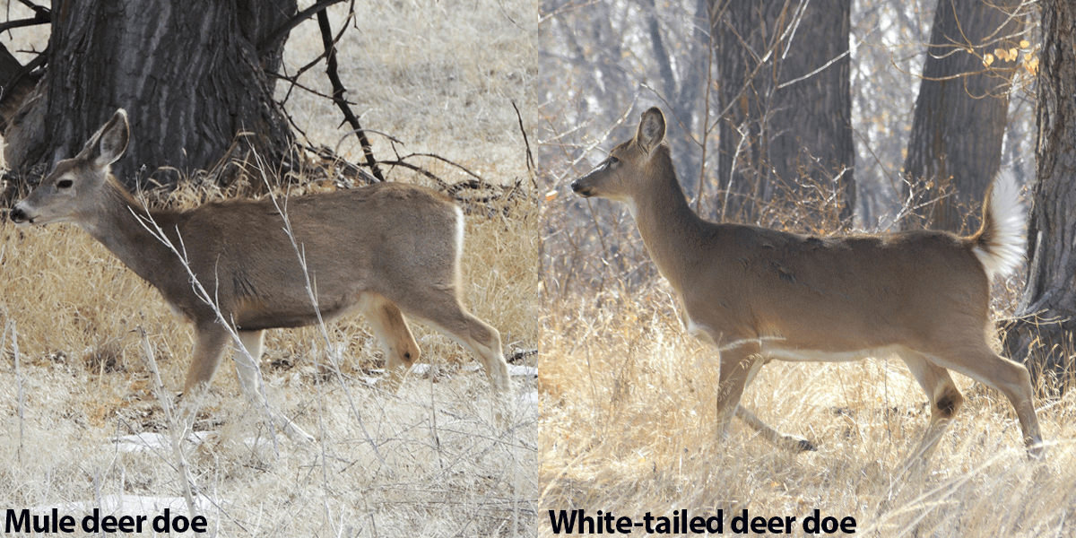 These are two common deer you might see, the mule deer and the Columbian white-tailed deer. Which one is the mule deer?