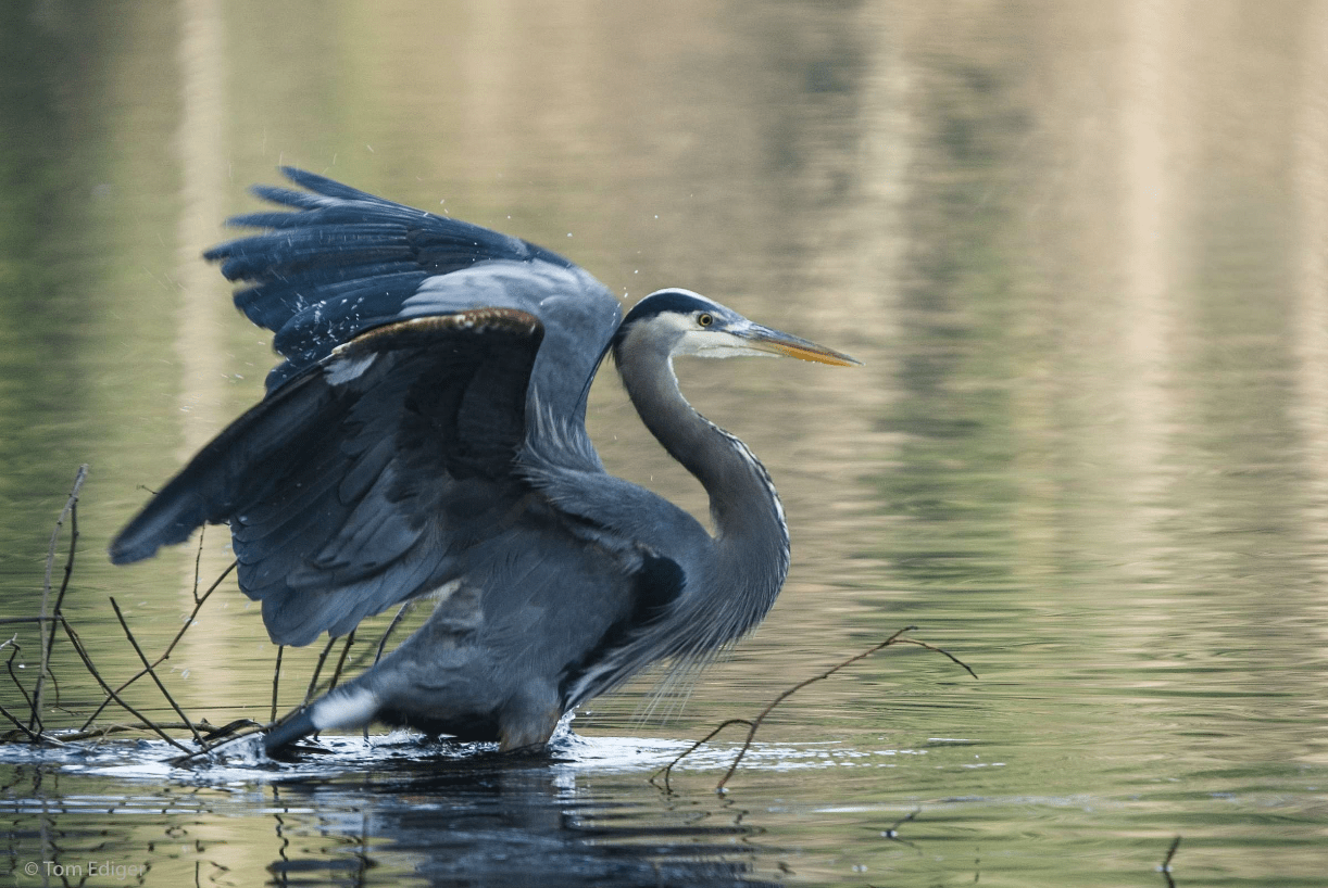 This large wading bird, commonly seen in wetlands and along Canadian lakes, has a long S-shaped neck and a strikingly curved bill.