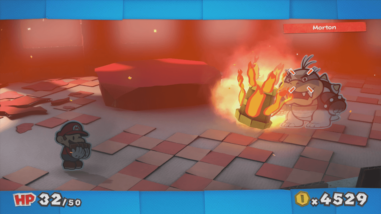 The train flys by, and its taken over by enemies, but most importantly, larry koopa is at the front of the train.
