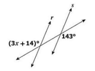 Given r//s, what is the value of x?