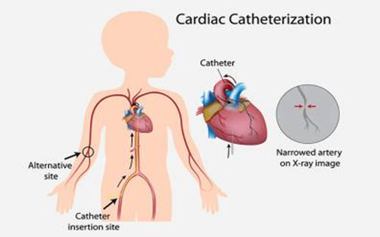This invasive test involves cannulation of a vein to assess cardiac structures.
