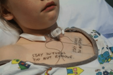 "Stay" sutures- They are placed with new tracheostomies as a way to open airway cartilage should the trach fall out.
