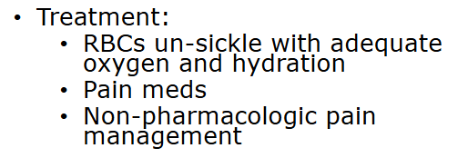 Oxygen, Hydration, pain management, and blood transfusion