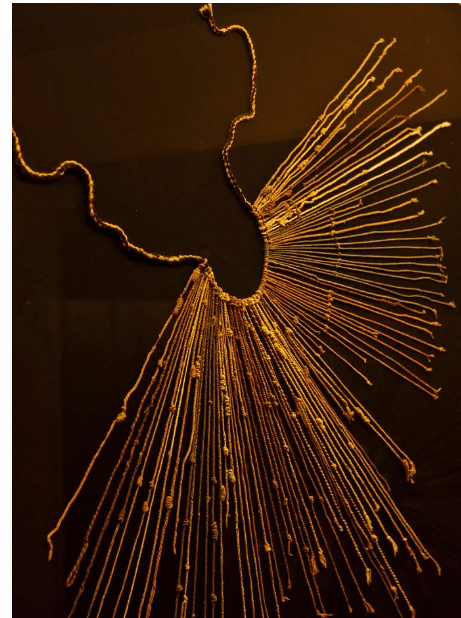 A quipu (khipu) was a method used by the Incas and other ancient Andean cultures to keep records and communicate information using string and knots. In the absence of an alphabetic writing system, this simple and highly portable device achieved a surprising degree of precision and flexibility. Quipu could record dates, statistics, accounts, and even abstract ideas. Quipu are still used today across South America.