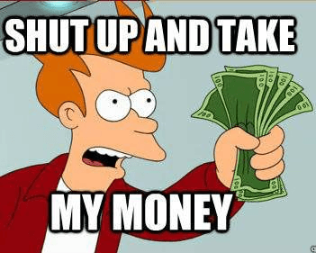 This Futurama character was often used to express an overwhelming urge to have their money taken for a desired product