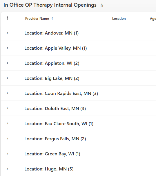 We use THIS list when unable to find any in office therapy providers for patient in Dash Scheduling.
