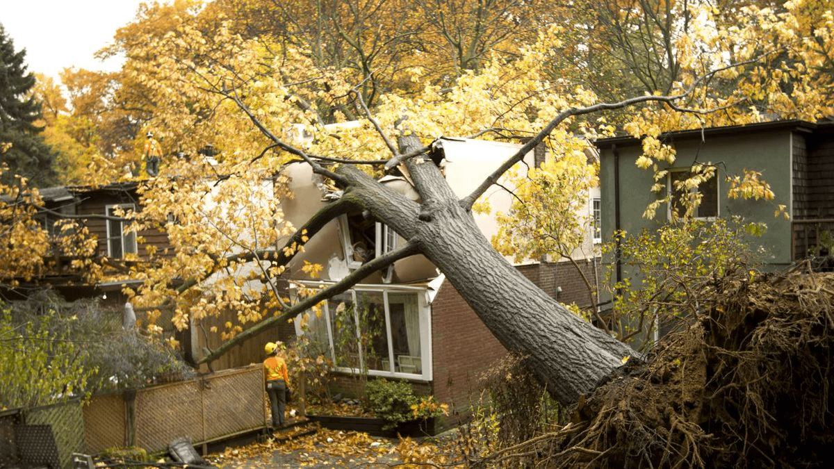 The tree ____ ____ during the recent storm.
