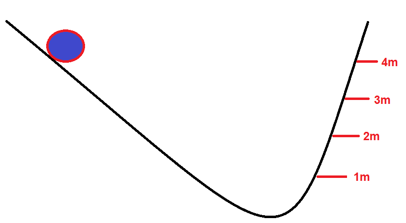 According to Galileo, this is the maximum height able to be reached by the rolling ball, below.