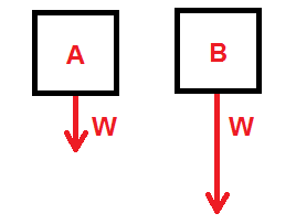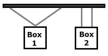 If both boxes have the same weight, then this box is placing greater tension on its support cables.