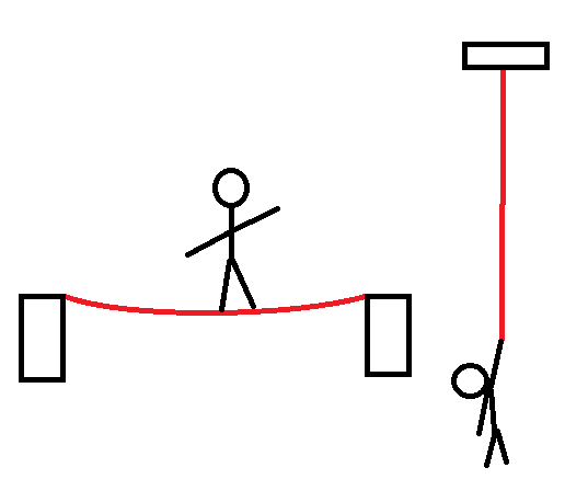 The two cases above show the same person and the same cable. This case results in greater tension in the cable.