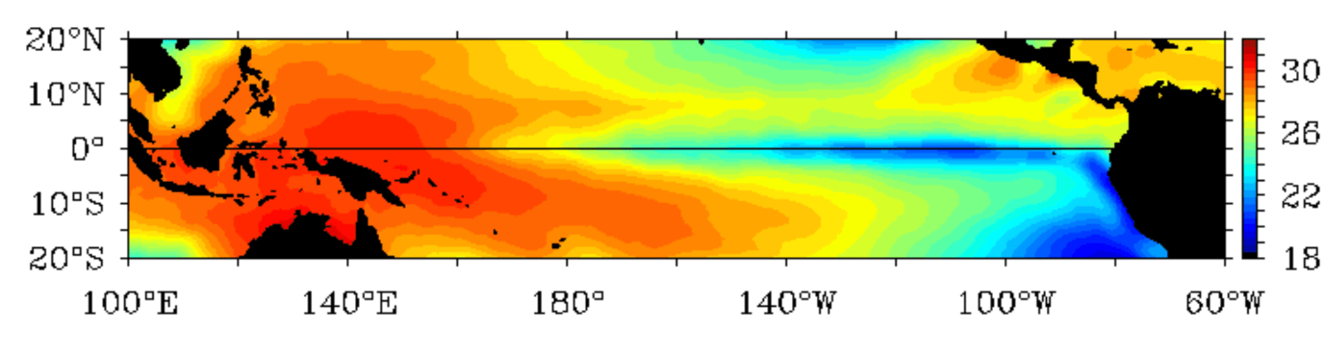 During normal ENSO conditions, what temperature is the water in the Eastern Pacific?