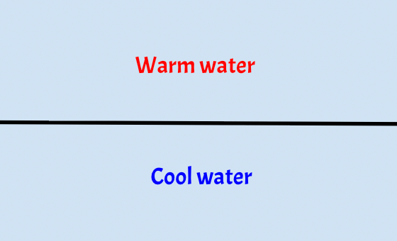 Draw a horizontal line through your whiteboard. Label where warm water and cold water would be. What do we call this layer?