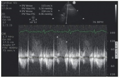 When viewing the spectral Doppler, a waveform is visible but the entire area around it is filled with white specs. What is this called?
