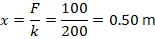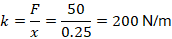 A spring stretches 0.25 m when a 50 N force is applied. Calculate the spring constant and predict how far the spring will stretch if the force is doubled.