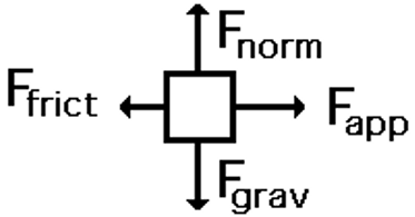 Fnorm = 50N, Fgrav = 50N, Ffrict = 15N, Fapp = 50N, Mass = 5kg