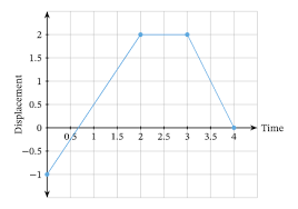 What is the velocity in the section of the displacement vs. time graph shown between 1 and 2 seconds?