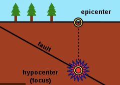 Where an earthquakes begins within the Earth is called the ___________. Directly above it on the surface of the crust is called the ___________