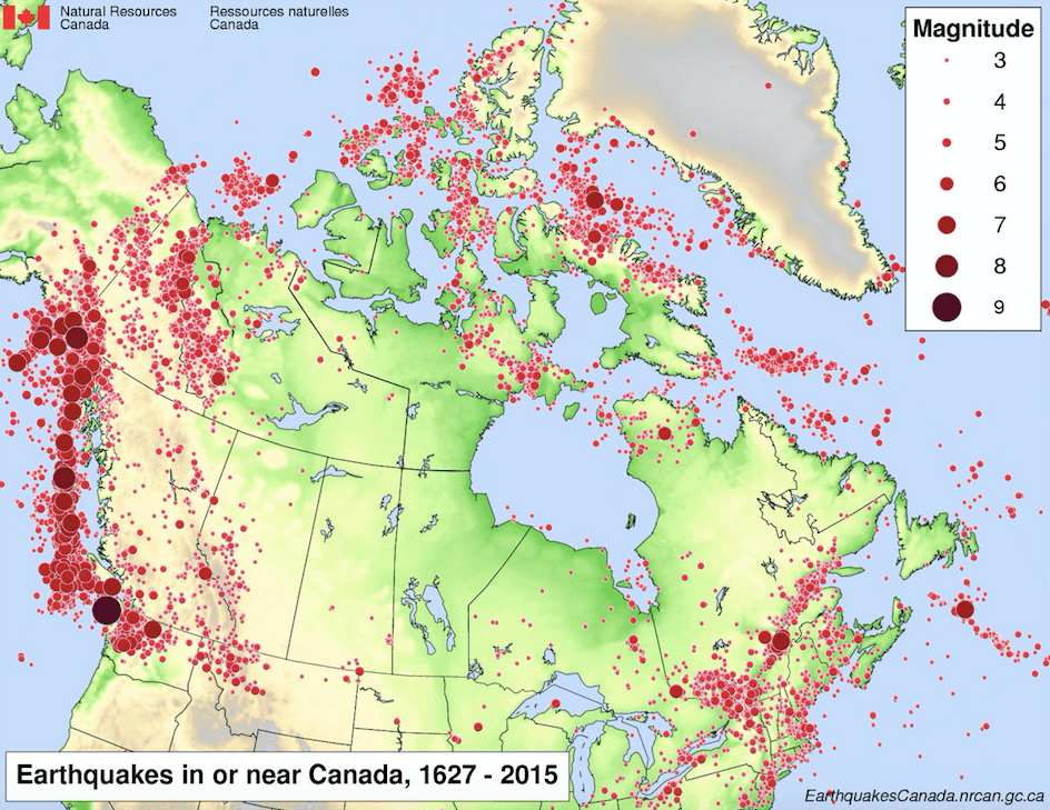 In Canada which coastal region has the most earthquakes? east coast, west coast?