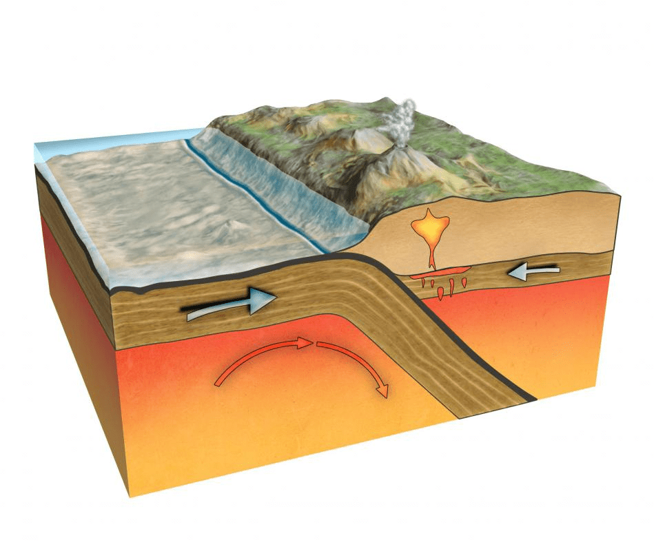 This is an example of a geologic process that could take place near a plate boundary because of plate movement.