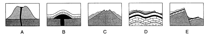 Which two processes could result in the formation of high mountains with well-rounded peaks?