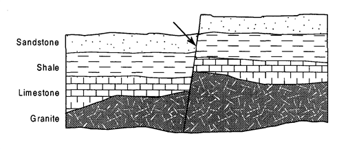 The feature indicated by the arrow most likely occurred as a result of...