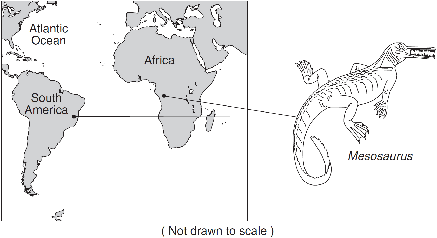 Which statement best explains why these freshwater Mesosaurus fossils are found today in some rock layers in both South America and Africa?