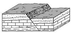 Which process was responsible for the displacement of the horizontal rock layers?