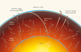 What happens to the oldest ocean crust: does it stay at the ridge or move farther away? Bonus 100 if you can name which layer of the earth it goes back into!