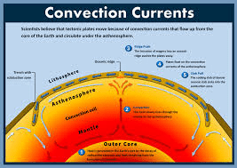 Warm rock rises and pushes plates; cool rock sinks pulling plates — this movement causes plates to move