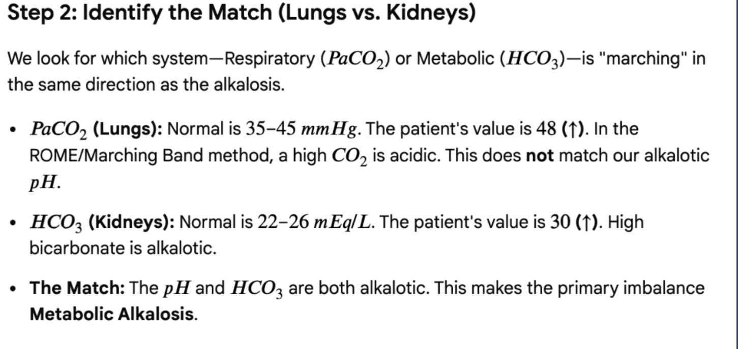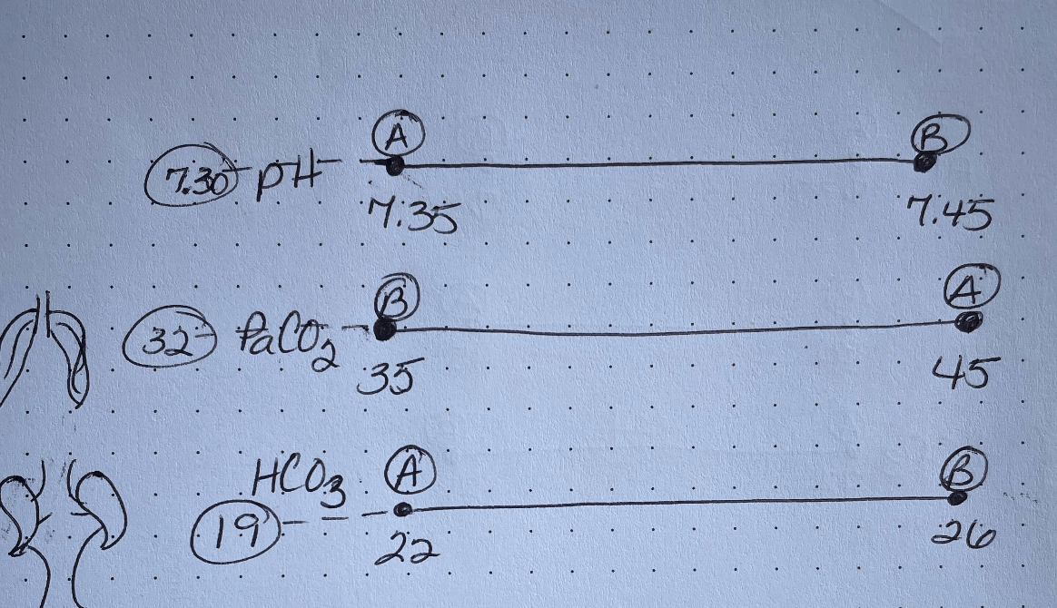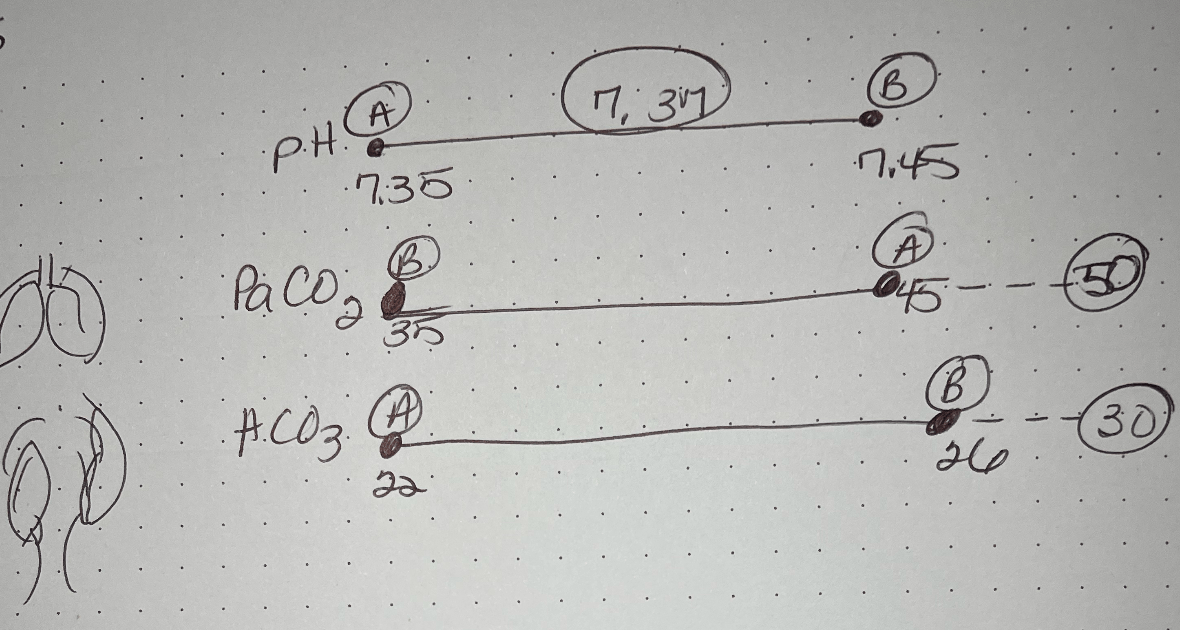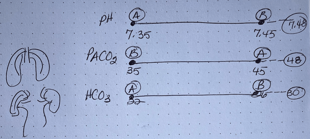 A patient's labs show a pH of 7.37, PaCO2 of 50, and HCO3 of 30. Calculate the imbalance.