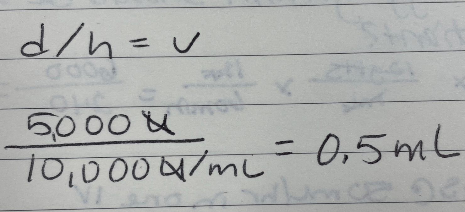 Order: Heparin 5,000 units SubQ. Supply: 10,000 units/mL. How many mL?