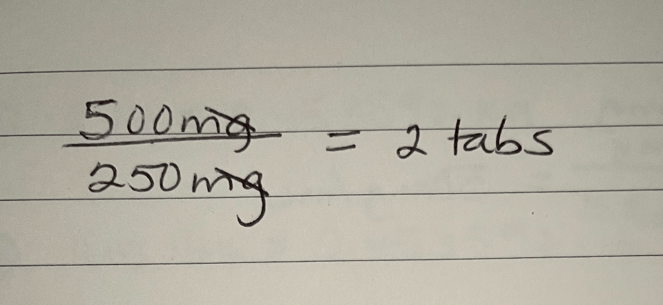 A provider orders 500 mg of a drug PO. If the pharmacy sends 250 mg tablets, this is the number of tablets you will administer.