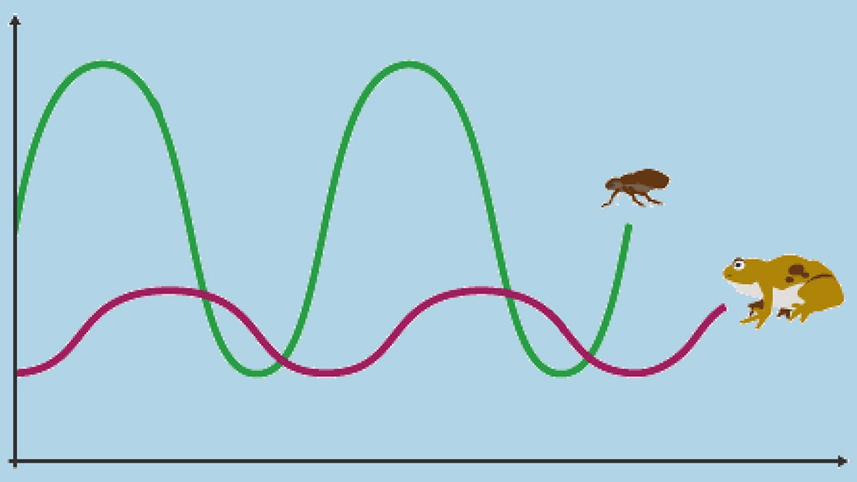 The graph below shows the relationship between a frog and an insect. Why does the population of frogs go up when the population of insects increases?