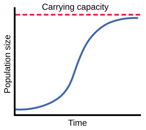 The population growth of a flock of birds is shown below. Deforestation leads to half of their forest being cut down. What would happen to the carrying capacity of this population of birds?