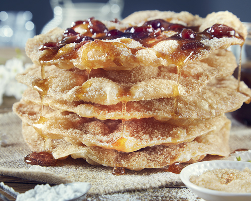 -MASA DE HARINA FRITA ESPOLVORADA DE AZUCAR, BAÑADA EN MIEL ?