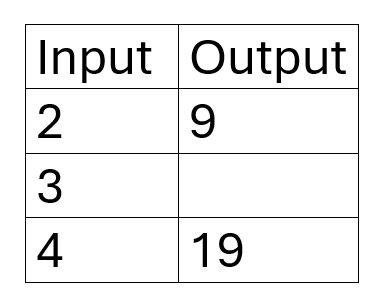 Rule:  Multiply by 5, subtract 1.  Which number would complete the table?