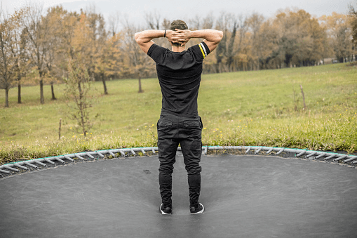 What type of energy (potential or kinetic) does a trampoline have when you are STANDING on it?