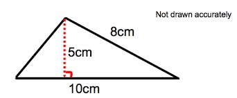 The area of a triangle with a length of 8 in. and a height of 6 in.