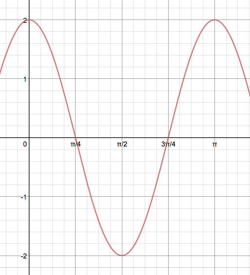 period = pi/2, phase shift = pi/2 to, amplitude = 4
